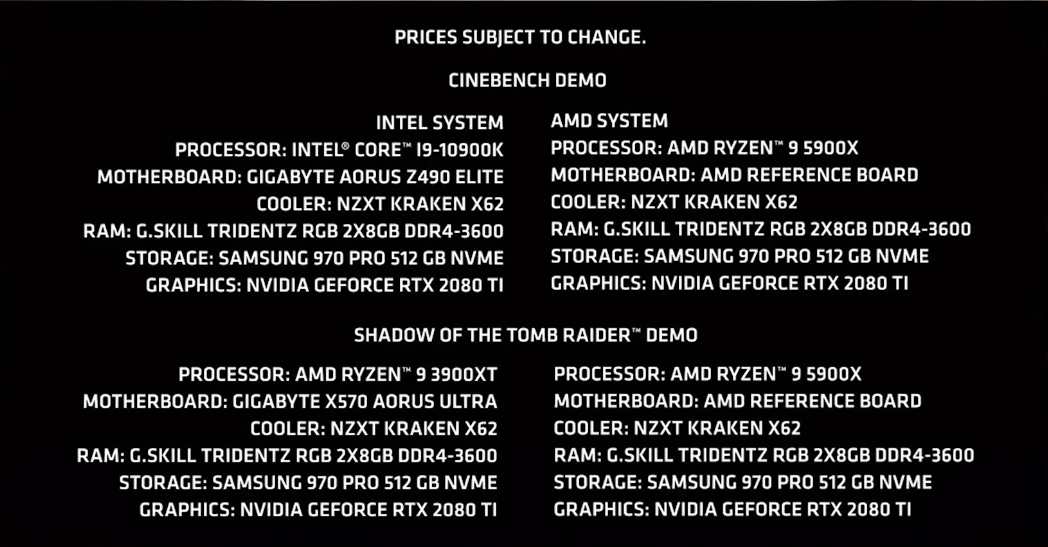 Во-вторых, остался прежним и кристалл I/O, что может означать куда меньший потенциал в разгоне оперативной памяти. Если внимательно изучить данные с презентации AMD, то можно обнаружить, что в тесте Cinebench 5900X и 10900К работали в паре с памятью на частоте в 3600MHz, хотя для процессоров Intel это далеко не предел.