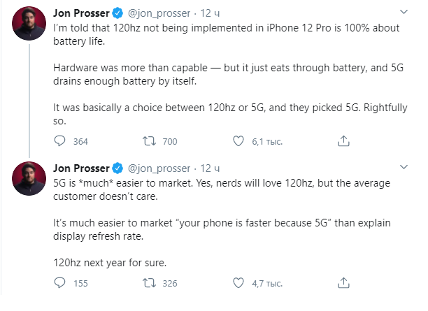 Кроме того, в iPhone12 Pro Max будет установлен телеобъектив с фокусным расстоянием 65 мм, в отличие от телеобъектива на 52 мм в iPhone12 Pro. @duanrui1205 добавил, что iPhone12 Pro Max также будет предлагать 5-кратное оптическое увеличение, в то время как iPhone12 Pro будет поддерживать только 4-кратное оптическое увеличение. Однако стоит сказать, что скорее всего данные показатели относятся к так называемому гибридному зуму. Если это так, то iPhon12 Pro Max может иметь 3-кратный телеобъектив, а iPhone12 Pro - 2-кратный. Прибавка этих значений к сверхширокоугольной камере с 2-кратным оптическим увеличением, как раз и даст 4-кратный и 5-кратный оптический зум для 12 Pro и 12 Pro Max.