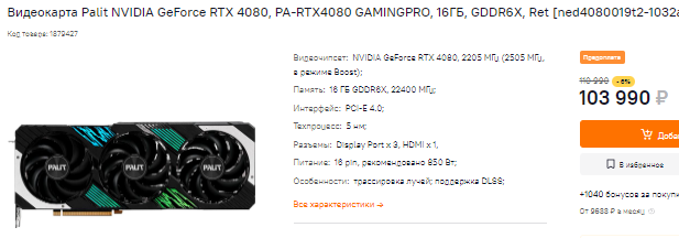 Цена GeForce RTX 4080 долгое время держалась на отметке в 106 тысяч, а сейчас пошла вниз. Мы полагаем, что вскоре флагман NVIDIA вскоре подешевеет, в результате чего вы сможете купить его за 95 тысяч рубликов. Даже это много, вот только сегодня ценовая политика Дженсена Хуанга такова, что геймерам приходится переплачивать за каждый чих. Скоро с нас будут брать деньги за каждый прорисованный пиксель. В целом производительность GeForce RTX 4080 действительно впечатляет, хотя всё те же инсайдеры уверяют, что видеокарта пользуется низким спросом у любителей компьютерных игр.