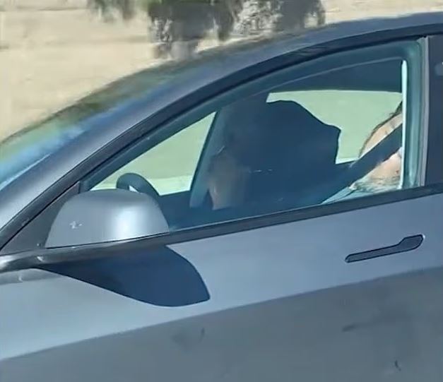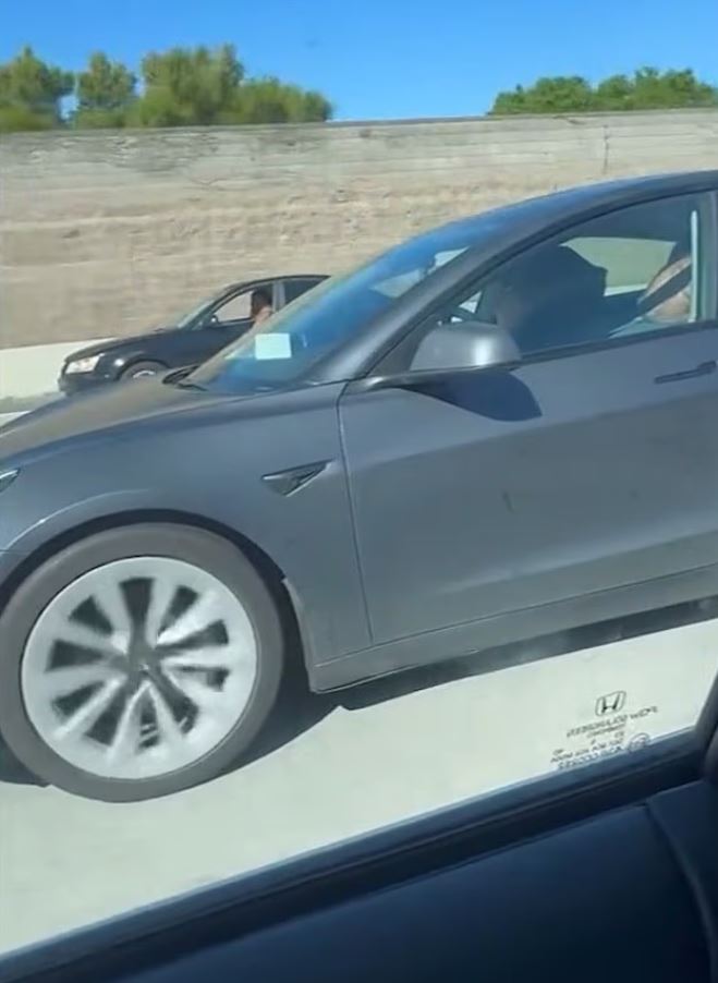 Еще одно видео телеканал ABC7 снял в городе Колтон. На нем водитель Tesla Model Y сидит за рулем в бейсболке и темных очках и, по всей видимости, тоже спит.