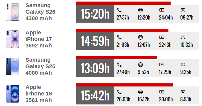 Текущий рекорд по ёмкости батареи среди компактных смартфонов принадлежит китайской версии Xiaomi 17: при экране 6,3" производитель установил батарею ёмкостью 7 000 мАч. Впрочем, на глобальный рынок этот же смартфон поступил уже с аккумулятором 6 330 мАч.