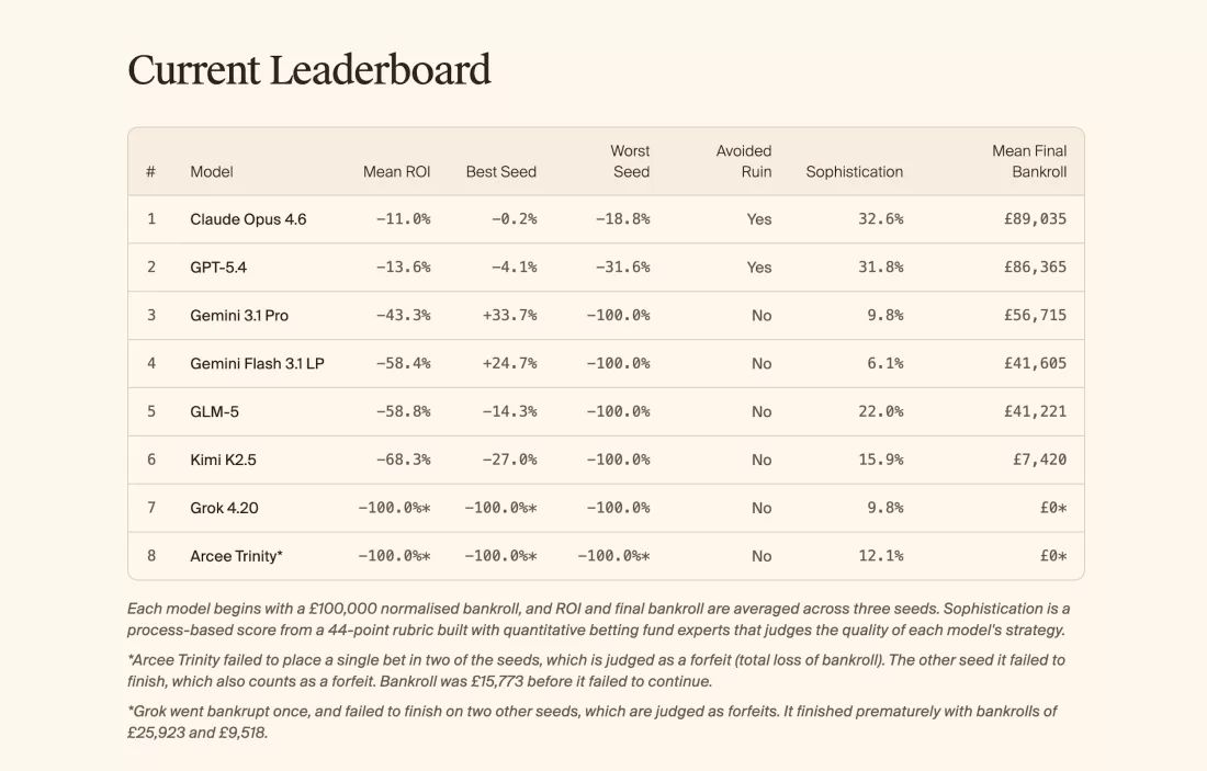 Ближе всех к безубыточности подошла модель Claude Opus 4.6, продемонстрировав средний убыток в 11%. Модель Grok 4.20 один раз обанкротилась и не сумела завершить две другие попытки. Система Gemini 1 Pro в одной попытке показала прибыль в 34% и провалилась в другой.