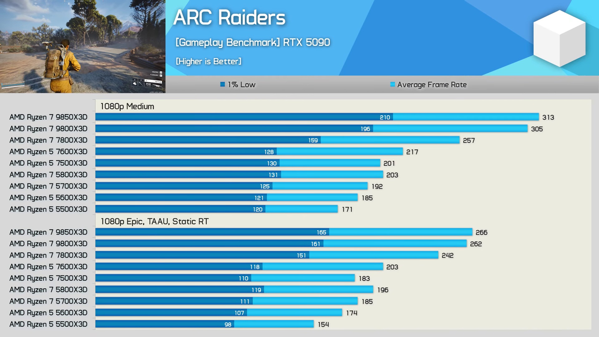 В некоторых играх ситуация чуть иная — например, в ARC Raiders процессор Ryzen 7 5800X3D опережает Ryzen 5 7500X3D на 1-7 %, а в Assetto Corsa модель Ryzen 5 5600X3D быстрее Ryzen 7 5700X3D на 2-4 %.