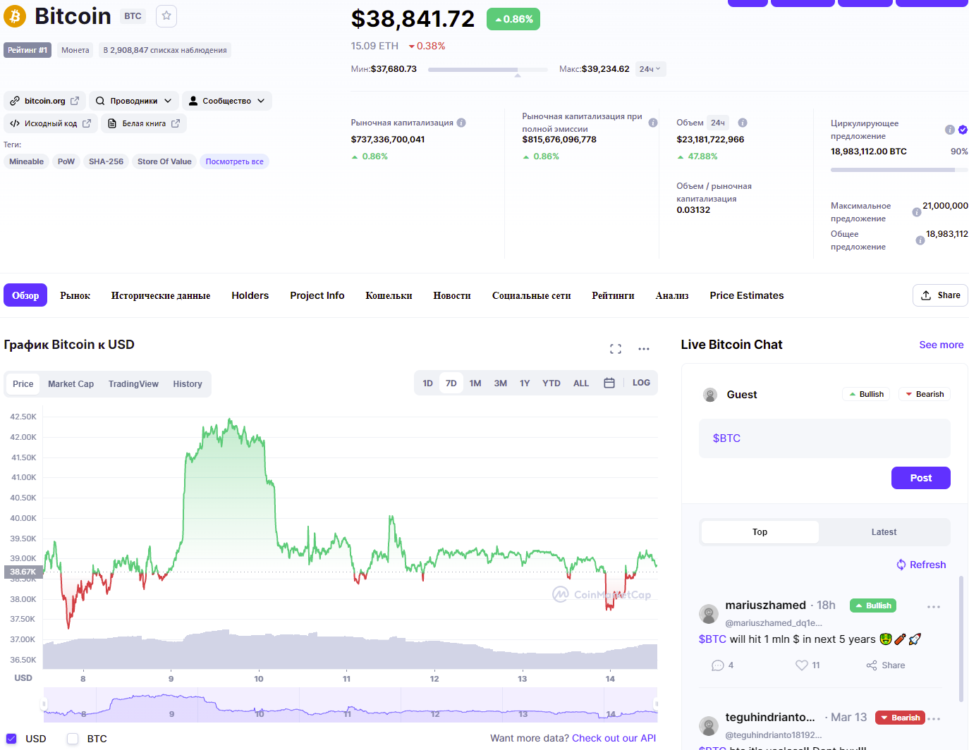 Эксперты отмечают, что в ближайшие несколько дней американский регулятор снова озвучит данные по инфляции и поднимет ключевую ставку. Биржи по всему миру приготовились к обвалу, а инвесторы держат руку на пульсе, пытаясь сойти с тонущего корабля, под названием криптовалюты. Ну а пока Биткоин укрепился на отметке 38 840 долларов. В последние несколько дней он выглядит относительно стабильным, поскольку все участники рынка замерли в ожидании больших перемен. Ну а в качестве третьей переменной можно считать негативные последствия от закона о криптовалютах, который будет принят в США в ближайшие месяцы. Сегодня он находится на рассмотрении экономистов и политиков, но пока окончательного вердикта нет.