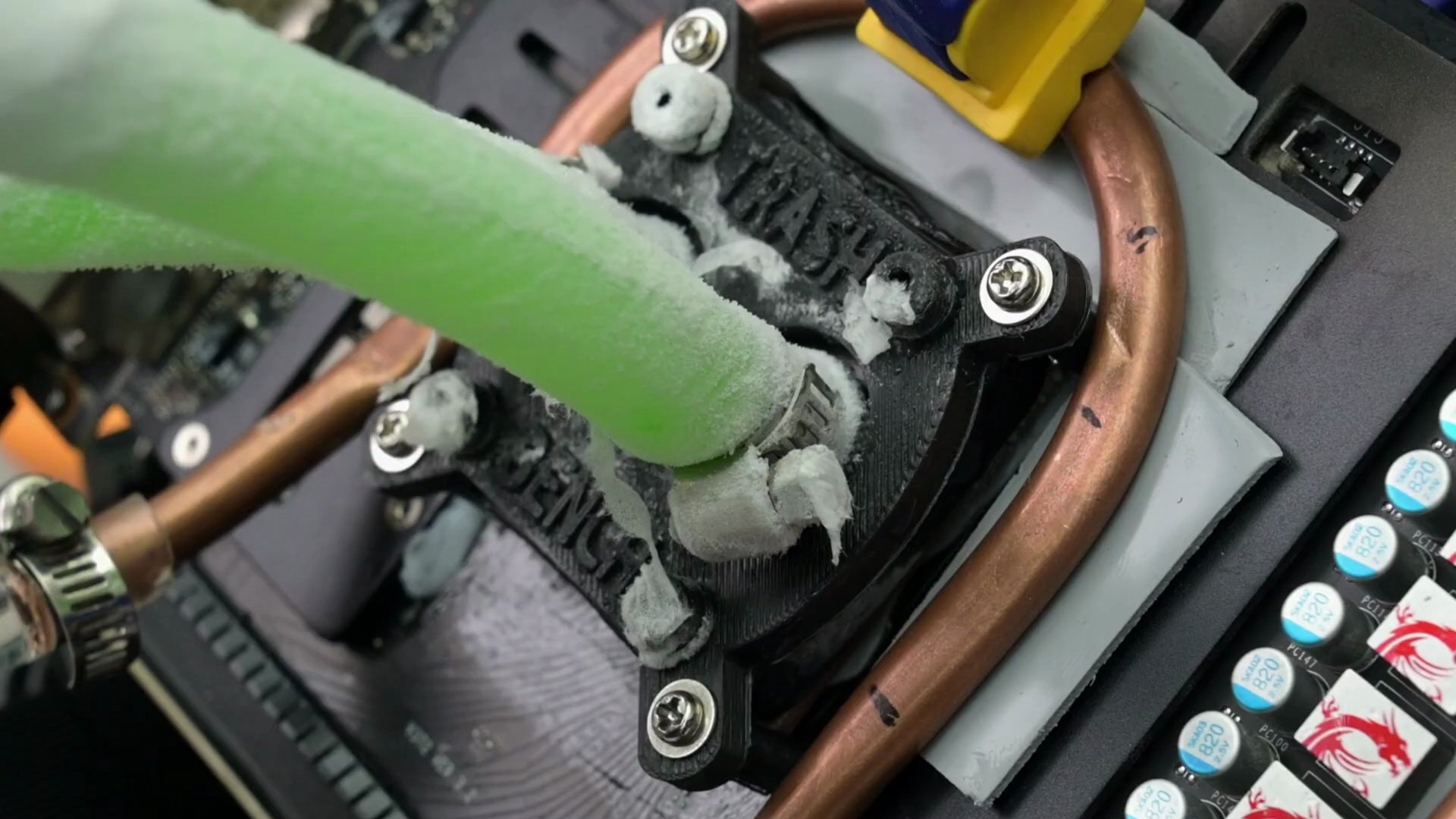 Для охлаждения VRAM были использованы обычные медные трубки, согнутые вручную. Система охлаждения включала в себя трубки с охлаждающей жидкостью и морозильную камеру. В результате модификации температуру чипов памяти удалось снизить на 20 °C, тогда как графический процессор во время тестов достигал температуры -1 °C.