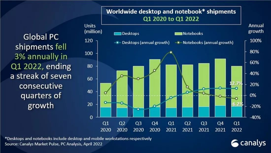 Фирма Canalys считает, что краткосрочный рост цен и возвращение к очной работе и учёбе внесли главный вклад в падение спроса. Дефицит чипов тоже никуда не делся, толкая цены вверх и заставляя покупателей ждать лучших времён.