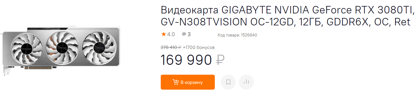 Вообще сегодня у нас какое-то засилье видеокарт производства GIGABYTE. В этом нет нашей вины, ведь магазин Ситилинк просто снизил цены на продукцию этой компании немного больше, чем на другие модели. Например, Radeon RX 6900 XT скинула почти 240 тысяч рублей, а GeForce RTX 3080 – 190 тысяч. Предлагаем на этом остановиться, ведь с нашей точки зрения все остальные видеокарты не могут считаться флагманскими. Если у вас есть другое мнение, пишите о нём в комментариях.