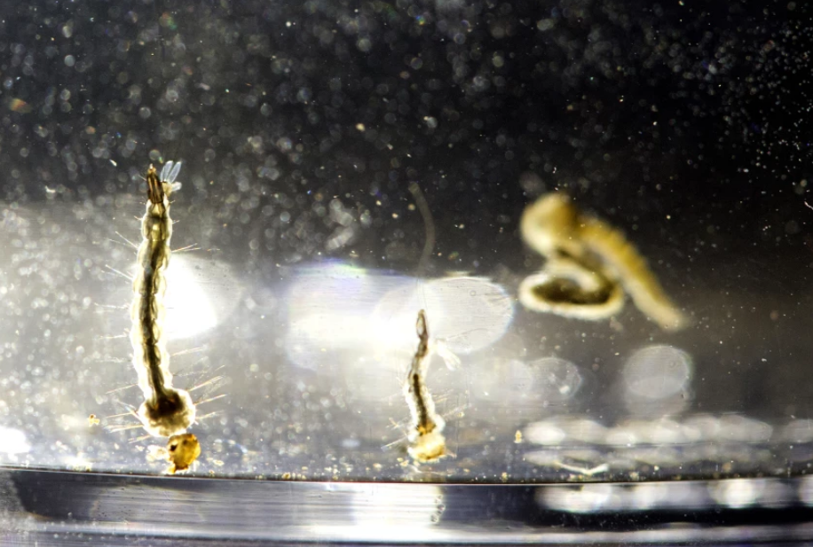 Британская компания Oxitec планирует выпустить своих генетически модифицированных комаров Aedes aegypti в лесах Калифорнии, если этот план будет одобрен властями штата. Личинки комара Aedes aegypti плавают в резервуаре. (Wilfredo Lee / Associated Press)