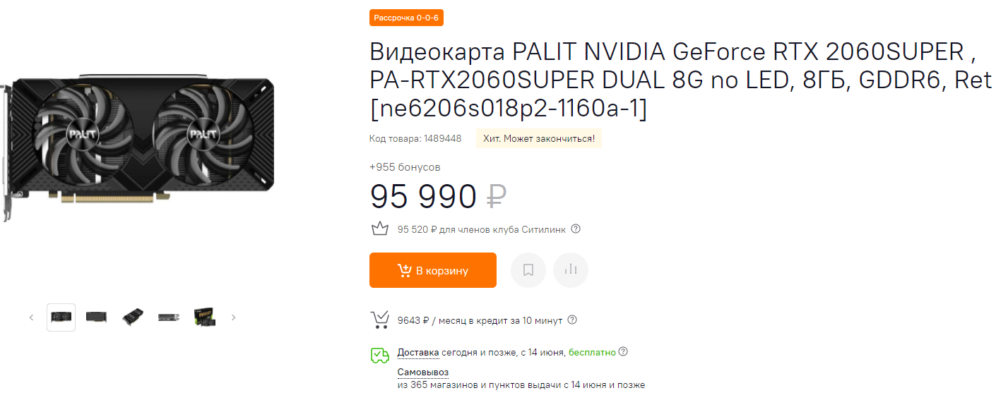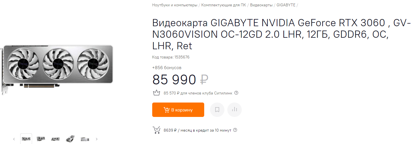 На фоне этого необычно выглядят цена на предыдущее поколение. К примеру, GeForce RTX 2060 SUPER продаётся за 95 990 рублей. Скорее всего, речь в поставке, поскольку других причин удерживать стоимость менее производительной модели на таком высоком уровне просто нет. Точно также завышено выглядит цена на GeForce GTX 1660 SUPER в 74 990 рублей. По сути, RTX 3060 в 2 раза быстрее, а разница в цене всего 11 000 рублей. GeForce RTX 2060 из старой поставки ещё дороже (120 990 рублей). Неясно, что будет с этими видеокартами делать ритейлер. Может быть, в ближайшие дни цены на них пойдут вниз, однако случится это только в том случае, если Эфириум либо продолжит падать, либо пребывать в неопределённости. Также важен фактор китайских майнеров. Если ребята и дальше будут на себе чувствовать давление правоохранительных органов, то можно ожидать новых скидок.