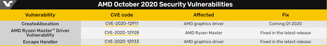 Третья проблема за неделю и вторая за вчерашний день затрагивает приложение AMD Ryzen Master. Этот программный инструмент предназначен для разгона и тонкой настройки процессоров AMD Ryzen. Обнаруженная уязвимость ПО может позволить пользователям, прошедшим проверку подлинности, получить некоторые системные привилегии. AMD уже подтвердила эту проблему и выпустила исправление для Ryzen Master под номером 2.2.0.1543.
