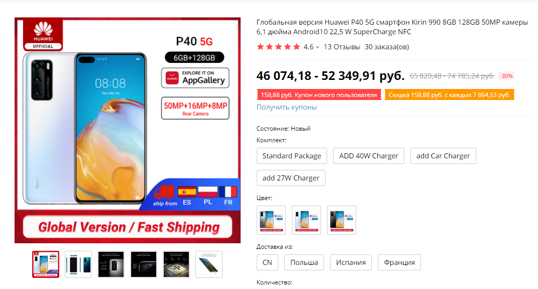 К примеру, на Aliexpress мы видим, что стоимость смартфона упала на 20 000 рублей, что очень неплохо, ведь ещё недавно он стоил гораздо дороже. Хотя, лучше вернуться на российский рынок, где аппарат продаётся по очень низкой цене. Так, в Ситилинке сейчас проходит акция, где он оценён в 39 990 рублей. Учтите, что это точно та же модель, что и на китайской площадке, а вот цена разнится, что даёт экономию в размере 30 000 рублей без долгих ожиданий и гарантии от подвальчика дядюшки Ляо.