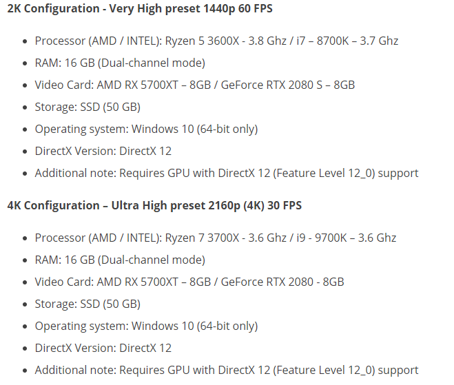 Сегодня были представлены официальные системные требования. Без малого их можно назвать очень и очень щадящими. Особенно если сравнить с Watch Dogs Legion, разработчики которой указали GeForce RTX 3080 для разрешения 4К с активной трассировкой. На самом деле минимальные требования соответствуют сверхнизким настройкам графики, а для игры на 1080р с 60 кадрами в секунду на средних вам понадобиться GeForce GTX 1080 или её аналог.