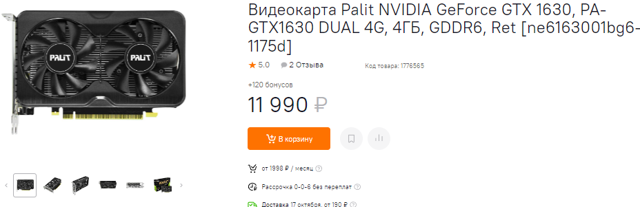 Доплатив 3 тысячи, вы уже можете взять GeForce GTX 1630. Это видеокарта была выпущена в 2022 году и стала самой медленной в серии. Ожидать от неё высокой производительности не приходится, но в 1080р вы сможете играть в нетребовательные новинки, ну а для игр посложнее придётся выбрать разрешение 720р. NVIDIA действительно экономила, что привело к использованию 64-битной шины. Здесь 4 Гб видеопамяти, но стоит только запустить что-то посложнее, как вместо ровного фрамрейта вам обеспечено слайд-шоу.