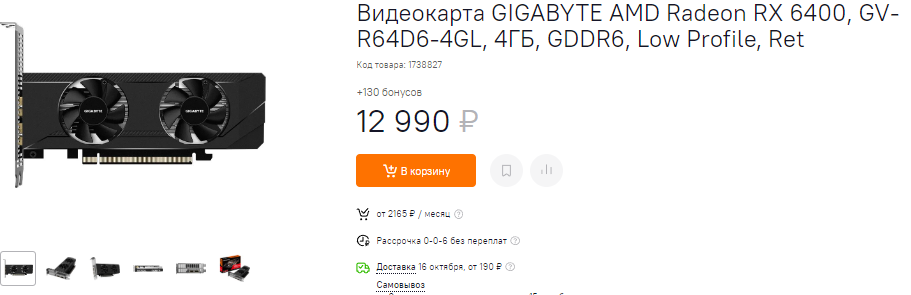 Ещё на 1000 рублей дороже есть Radeon RX 6400. Это ещё одна медленная видеокарта для тех, у кого денег, как кот наплакал. Мы хотим предупредить наших читателей, которые насмотрелись тестов, и уже думают о покупке Radeon RX 6400, ведь ничего подобного вы у себя дома не увидите. Вся хитрость в том, что у блогеров, которые проводят тесты, стоит современный процессор с поддержкой PCIe 4.0. Скорее всего, у вас PCIe 3.0, а значит вместо стабильных средних настроек в 1080р вы увидите минималку и жуткие тормоза. В случае, если у вас в наличии PCIe 4.0, то даже не думайте, ведь за такую цену ничего быстрее нет и пока не предвидится.