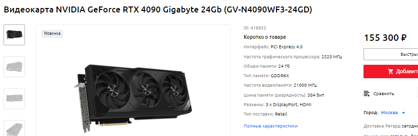 Ну и мы не можем обойти GeForce RTX 4090. В Ситилинк цены на новинку кусаются, а две модели производства GIGABYTE стоят около 160 тысяч. Как мы уже писали выше – лучше подождать, но может вам уже не терпится купить новинку, а цена имеет второстепенное значение. Если это так, то вы знаете куда перейти за покупкой. Ну а всем разумным геймерам мы рекомендуем запастись терпением. В декабре состоится релиз нового поколения графических чипов AMD. Ожидается большой прорыв в трассировке лучей, а цена традиционно будет ниже, чем просит NVIDIA. Посмотрим, может гораздо выгоднее будет купить Radeon RX 7900 XT, наслаждаясь скоростью по относительно низкой цене.