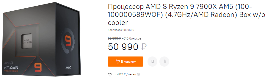 Если вы решили купить видеокарту GeForce RTX 3090 Ti, то вам стоит купить максимально мощный камень, который будет выжимать из неё все соки. Пожалуй, Ryzen 9 7900X – это оптимальный выбор. Здесь есть 12 быстрых ядер, основанных на архитектуре Zen 4. Это 5-нм технологический процесс, а сам Ryzen 9 7900X показывает ультимативную мощность в любых задачах. Флагманы Intel нового поколения быстрее, но в продаже их пока нет. Заметим, что сборка на новом поколении AMD обойдётся вам в копеечку, но здесь мы уже вам советов не даём. Увы, но владельцы GeForce RTX 3090 Ti не должны экономить.