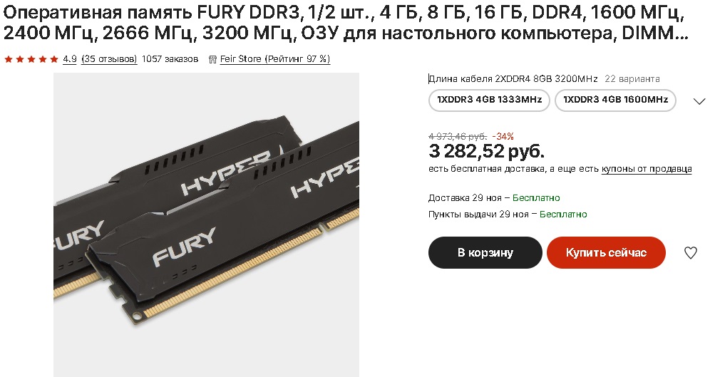 Данный комплект с купоном продавца обойдётся чуть больше 3 тысяч рублей, учитывая что Ryzen 5 5600 поддерживает максимальную частоту памяти 3,200 МГц, более продвинутых планок и не нужно.