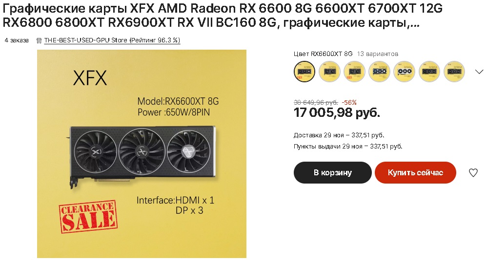 Самая затратная детально нашей сборки - видеокарта. В роли видеоадаптера мы установим AMD Radeon RX6600 XT от вендора XFX.