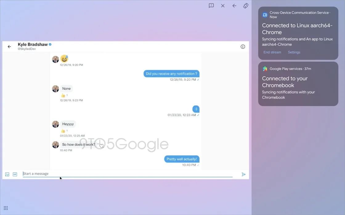 Выглядит так, словно Google разрешит вести потоковую трансляцию приложений с мобильного устройства на компьютер. Речь идёт не только о хромбуках, поскольку трансляция работала как на Chrome OS, так и на Windows 11.