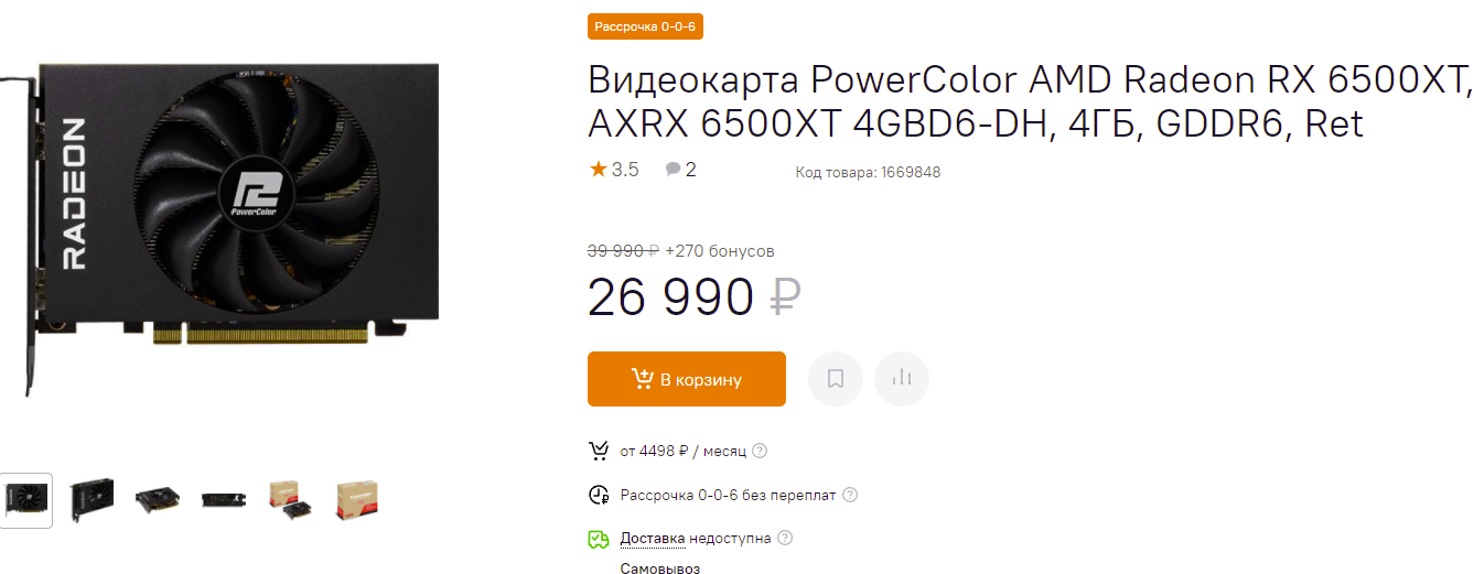 Вообще сейчас не лучшее время для покупки видеокарты, ведь Эфир топчется на месте, а инвесторы вот-вот начнут сливать криптовалюту. Это отразится на ценах на видеокарты, которые могут пойти вниз. Но, если видеокарта нужна вам здесь и сейчас, то самым дешёвым вариантом будет Radeon RX 6500 XT. За 27 тысяч рублей – это один из лучших вариантов на рынке. Хотите играть во все игры на средних, но не хотите тратить на это целое состояние? Тогда ваш выбор Radeon RX 6500 XT.