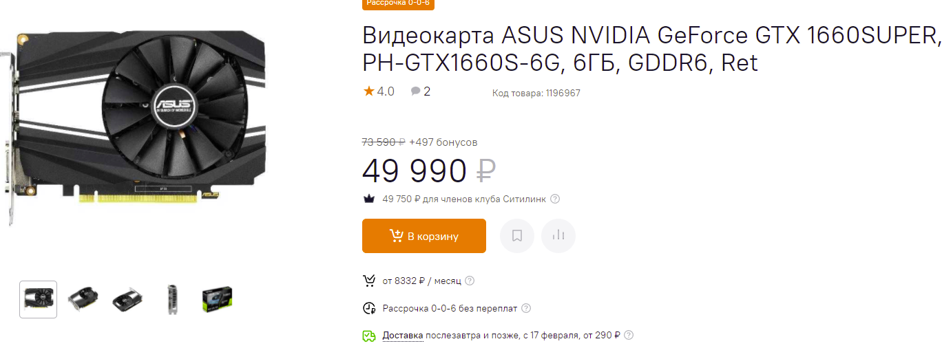 Не верите в способность AMD выпускать стабильные драйвера и качественные продукты? В таком случае ваш удел – GeForce GTX 1660. Это хорошая и современная видеокарта, вот только Radeon RX 6500 XT почти идентична по производительности, но стоит на 13 000 дешевле. Покупайте GeForce GTX 1660 только в том случае, если вы фанат NVIDIA и не можете жить без зелёной наклейки на видеокарту. Во всех остальных случаях советуем думать головой, ведь иногда выгодные предложения ближе, чем кажется.