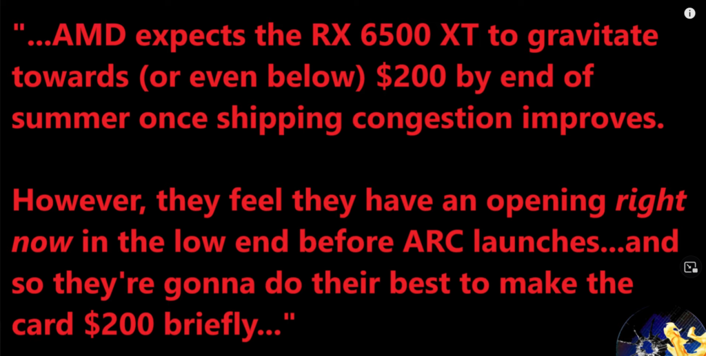 Как оказалось, аналогичную позицию заняла и AMD. Инсайдеры уверяют, что производитель изначально не планировал продавать Radeon RX 6500 XT по 199 долларов, поскольку это слишком мало. Но геймеры требовали бюджетных видеокарт. С этой целью AMD уговорила нескольких партнёров (PowerColor и XFX) продавать первую партию в ограниченных количествах по 200 долларов, а все остальные уже по 250 и дороже. Есть и другие подробности. Сообщается, что в описании Radeon RX 6500 XT указан крошечный кулер, который ни один производитель не захочет ставить на видеокарту такого уровня. Получается, что AMD изначально создала условия для продажи новинки значительно дороже рекомендованных 199 долларов, однако вводила геймеров в заблуждение.