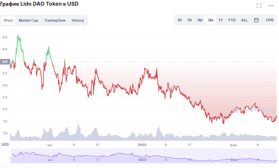 Convex Finance (CVX) на втором месте. Это мутный токен, созданный для генерации денег из воздуха. Идея звучит красиво, а техническое описание способно привести в восторг неподготовленных пользователей, вот только в реальности CVX ничем не отличается от собачьих монет. Аналитики полагают, что дно ещё не достигнуто, а значит покупать актив не стоит. В последние дни заметен спад по торгам, опустившийся с более чем с 30 миллионов в сутки до 15 миллионов. Беспокоиться за судьбу CVX пока не приходится, ведь умение делать деньги из пустоты в наше время считается очень ценным.