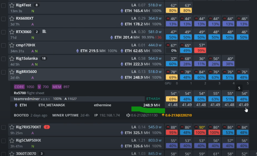 В ходе прошивки укажите правильные тайминги для вашей видеокарты. Это крайне важно, поскольку вы используете оригинальную версию BIOS. Перегружайте компьютер и настраивайте риг или одну карточку по своему усмотрению. Солёный говорит, что вначале полностью убедился в работоспособности одной карты, а только после этого прошил всю ферму. Сегодня риг стабилен, а температуры и скорость вращения кулеров радуют его музыкальный слух. Ферма приносит стабильные 249 MH/s, что вполне неплохо, ведь с одной видеокарты Radeon RX 5700 он получает около 41.5 MH/s. Блогер советует не торопиться. Сам он доверил работу специалисту, но в будущем будет проводить подобные манипуляции лично. Если вы не обладаете достаточными знаниями, лучше последовать примеру Серёги. В конце концов видеокарты стоят настолько дорого, что сегодня превращать их в кирпичи могут себе позволить только совсем уж отчаянные энтузиасты.