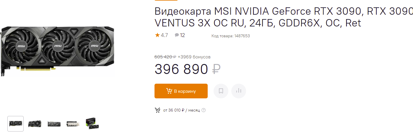 Если вы здесь и сейчас ощущаете острую нехватку видеокарты в вашем системном блоке, то читайте наш материал. Выбор огромен, хотя стоимость далека от идеала. Прежде всего мы предлагаем вам взглянуть на GeForce RTX 3090. На пике подорожания данная карточка стоила больше 600 тысяч, ну а сегодня опустилась ниже 400 000 рублей. Учтите, что только за последние несколько суток она скинула добрую сотню тысяч рублей.