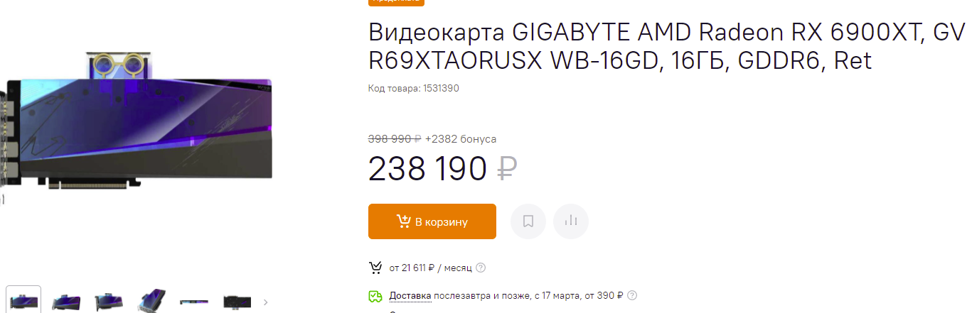 Radeon RX 6900 XT демонстрирует рекордные показатели удешевления. За прошедшие несколько дней цена на неё упала на 41% или на немалые 160 тысяч рублей. Напомним, что ещё совсем недавно подобные карты стоили около 150 000 рубликов, поэтому нынешние 238 000 всё ещё сильно завышены. В данном случае не стоит забывать о проблемы роста курса национальной валюты, что не могло не сказаться на конечной стоимости.