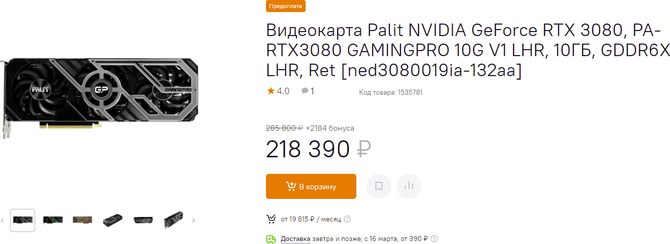 GeForce RTX 3080 всё так же далека от нормы, и превышает февральскую цену на 60 000 рублей. Несмотря на это скидка существенна, что позволяет геймерам с деньгами получить скоростную флагманскую видеокарту без долгих ожиданий скидок и выгодных предложений.