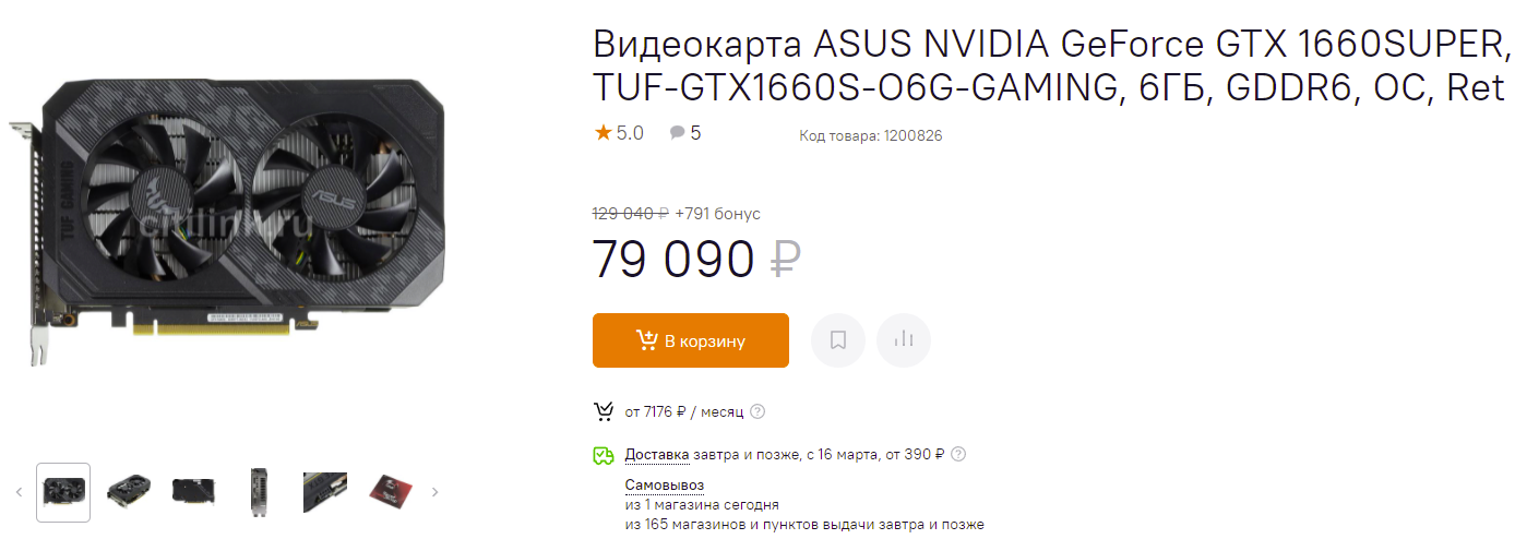 GeForce GTX 1660 SUPER опустилась до 79 тысяч. Кстати, именно столько она стоила в октябре, хотя тогда цена была оправдана высокими доходами в майнинге. Скажем прямо: ничего более быстрого дешевле 79 тысяч рублей в Ситилинк нет, поэтому торопыгам, которые не хотят ждать несколько месяцев, мы предлагаем присмотреться к этой видеокарте.