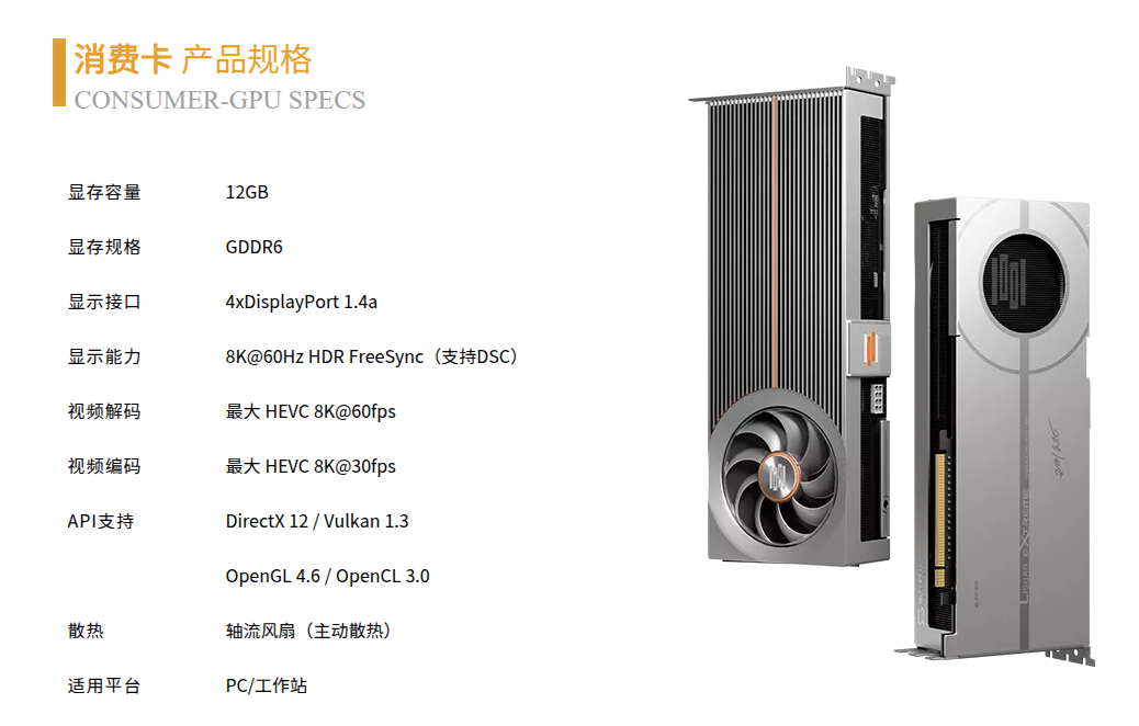 Lisuan обновила страницу со своими грядущими видеокартами и ускорителями для профессионалов и серверного рынка. Можно заметить финальный рендер LX 7G100 в двух проекциях, который устраняет неопределенность касательно типа системы охлаждения.