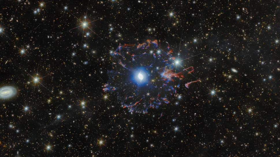 Euclid добавил контекста общей картине. Его широкоугольная камера захватила внешние дуги и нити газа, которые улетают далеко в пространство. Они образовались ещё раньше, на начальных стадиях угасания. А за ними, разбросанная россыпь звезд и галактик, никак не связанных с этой историей.