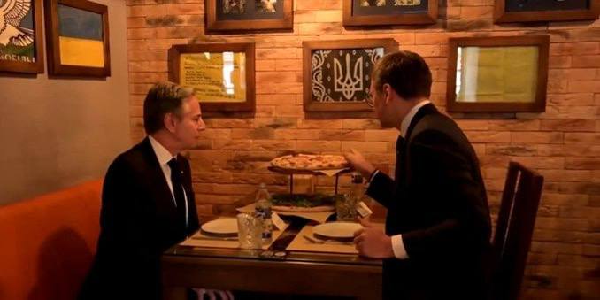 По сложившейся между Блинкеном и Кулебой традиции, два «дипломата» пошли в один из киевских ресторанов быстрого питания: на этот раз выбор пал на пиццерию. После скромного, но от этого не менее значимого ужина Блинкен выступил в одном из киевских музыкальных клубов, где сыграл на гитаре и спел.