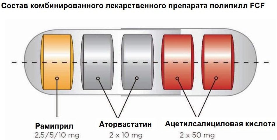 Как правило, полипилюли (или полипилл) врачи назначают пациентам, восстанавливающихся после инфаркта. Эти таблетки представляют собой - комбинацию лекарств, включающую три основных препарата: статины, снижающие уровень холестерина, ингибитор ангиотензин-превращающего фермента (АПФ) для снижения артериального давления и средство для разжижения крови, такое как аспирин. По мнению специалистов, такая схема лечения может предотвратить повторные нарушения сердечной деятельности.