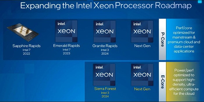 Intel удвоит число ядер своих процессоров Xeon Scalable в течение следующих двух поколений благодаря передовым технологиям обработки и компоновки. Линейка серверов Sapphire Rapids-SP 4-го поколения станет первым семейством серверов Xeon, использующим чиплетно-плиточный дизайн, что впервые увеличит число ядер до 60. Последующие семейства Emerald Rapids и Granite Rapids будут по-прежнему сосредоточены на плотности вычислений, удваивая количество вычислительных кристаллов на верхнем уровне.