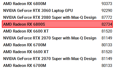Что касается его «напарницы» в лице видеокарты Radeon RX 6800S, то она основана на GPU Navi 22 и может похвастаться наличием 32 вычислительных блоков, 2048 потоковых процессоров, а объём её видеобуфера достигает 8 Гбайт при 128-битной шине.