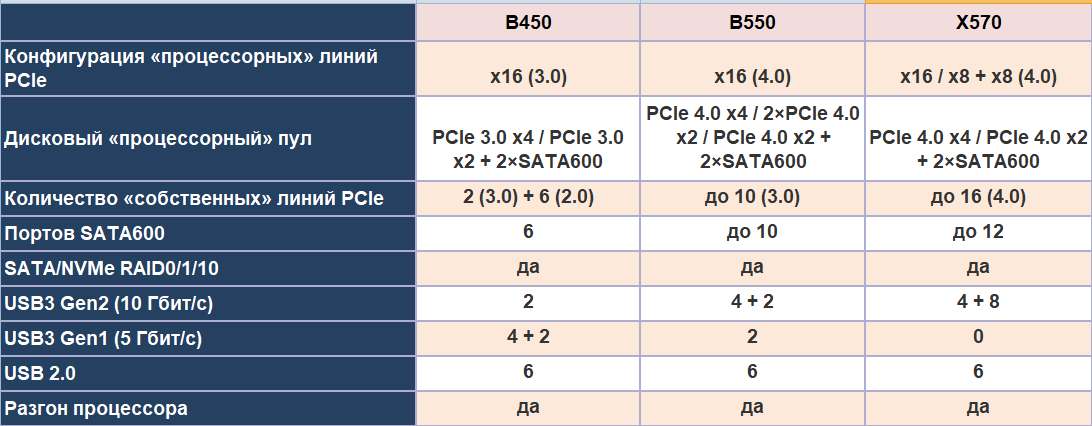 В мае 2020 года компания AMD представила миру материнские платы, основанные на новейшем чипсете B550. Данная системная логика должна была привнести поддержку интерфейса PCIe 4.0 в настольные системы бюджетного уровня. Чипсет B550 имеет меньший TPD, чем текущий флагман в лице X570, и лишен активного охлаждения, которое так невзлюбили большинство пользователей. Кроме того, чипсет B550 имеет ряд других преимуществ перед уходящей логикой B450, которые можно оценить, изучив таблицу ниже.