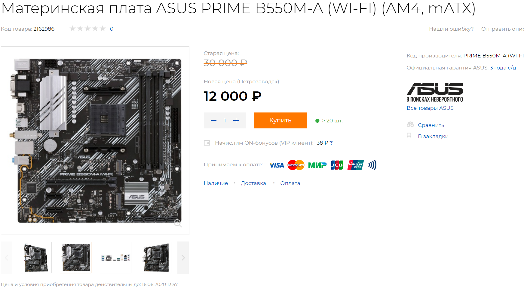 И вот, первые образцы добрались до просторов нашей необъятной родины и стали доступны самым нетерпеливым покупателям. Давайте посмотрим на цены, за которые они нам предлагаются. Ассортимент представлен пока что лишь продукцией компании ASUS. Самая недорогая из предлагаемых плат ASUS PRIME B550M-A обойдется покупателю в 10900 рублей. Далее цены указаны на скринах в порядке возрастания. Со временем цены могут немного измениться в любую сторону. Также в скором времени появится продукция других производителей, таких как ASRock, MSI и GIGABYTE.