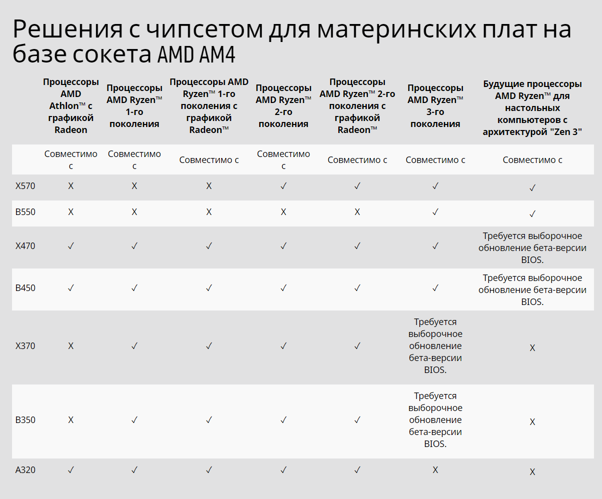 Мы убедились в лояльности компании ASUS к почитателям своей продукции и в щедрости российских магазинов. Что же, теперь можно определиться с выбором — оставаться на старой материнской плате или произвести апгрейд. Но здесь стоит учитывать один из главных моментов — поддержка будущих процессоров AMD ZEN3. Если платы на чипсете B550 дают стопроцентную гарантию возможности будущего апгрейда, то с платами на устаревшей логике B450 и X470 в настоящий момент имеется путаница и неопределенность. Хотя, на официальной странице компании AMD имеется обновленная информация о том, что поддержка процессоров Ryzen 4000-ой серии на вышеуказанных чипсетах таки будет, но потребует выборочное обновление бета-версии BIOS.