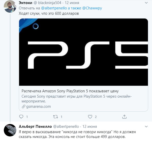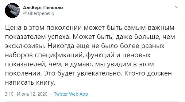 Своей версией по поводу цены на PlayStation 5 поделился бывший работник компании Microsoft Альберт Пенелло, который 18 лет занимал должность главы отдела по маркетингу, в том числе и руководил маркетинговыми вопросами приставки Xbox One. На данный момент он работает в Amazon, но его знания по поводу ценовой политики на различные технические устройства до сих пор не иссякли, поэтому, когда в Twitter велись активные обсуждения PS5 и её цены, он высказал своё личное мнение, основанное на детальных наблюдениях за деятельностью Sony.