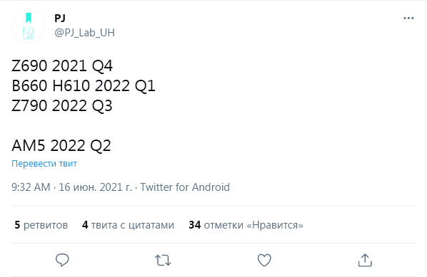 Действительно, платформа AM5 и флагманский чипсет X670 для процессоров под кодовым названием Raphael появится во 2 квартале 2022 года. Не факт, что массовые продажи начнутся в это же время, но исключать этого нельзя. Скорее всего AMD пока и сама не знает точных сроков. Здесь всё зависит от Apple. Дело в том, что сегодня яблочная компания – это основной партнёр и покупатель чипов у тайваньской TSMC. Чем быстрее Apple освободит 5-нм техпроцесс, тем раньше AMD получит возможность начать массовое производство своих 5-нм процессоров Ryzen 6000. В данном случае стоит указать на очевидное противоречие. Дело в том, что долгое время инсайдеры уверяли, что платформа AM5 появится только в 4 квартале 2022 года. Это подтверждалось ещё и тем, что именно в 3 квартале состоится презентация новых iPhone 13 на новом 4-нм или 3-нм техпроцессе.
