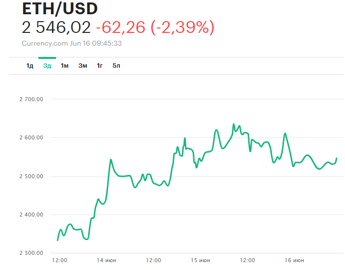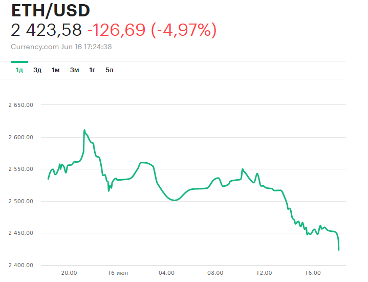 Несмотря на оптимистичные настроения начала недели, Эфириум так и не смог преодолеть планку в 2600 долларов, а сегодня торгуется на отметке 2440 долларов. Мало того, перед нами нисходящая тенденция, начавшаяся ещё утром и не сулящая криптовалюте ничего хорошего. В данном случае неясно, что не позволяет рынку подняться. Возможно, дело в сложном положении китайских майнеров, которые уже вторую неделю подвергаются гонениям властей. А может быть инвесторы пока просто не готовы доверять активу, который за короткий срок может вырасти до 4000, а после сорваться до 2200, зависнув на этой отметке почти на месяц.