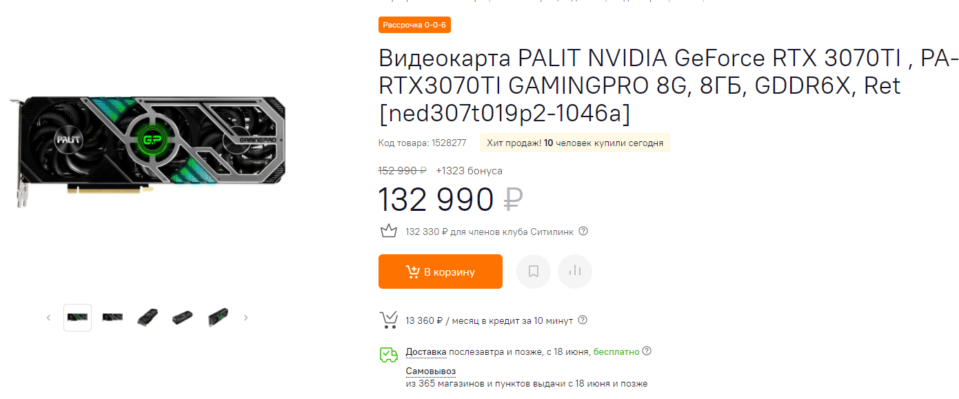 В любом случае нам с вами это только на руку, ведь в последние дни мы наблюдаем настоящую волну скидок в Ситилинк. Сегодня мы бы хотели остановиться на нескольких видеокартах, которые будут интересны как майнерам, так и геймерам. Заранее предупреждаем, цены всё ещё высокие, а слабонервным лучше купить процессор с интегрированной графикой. В данном случае мы просто констатируем, что выбора у геймеров нет, ведь пока никто не предлагает скоростную GeForce RTX 3080 за 70 тысяч рублей.