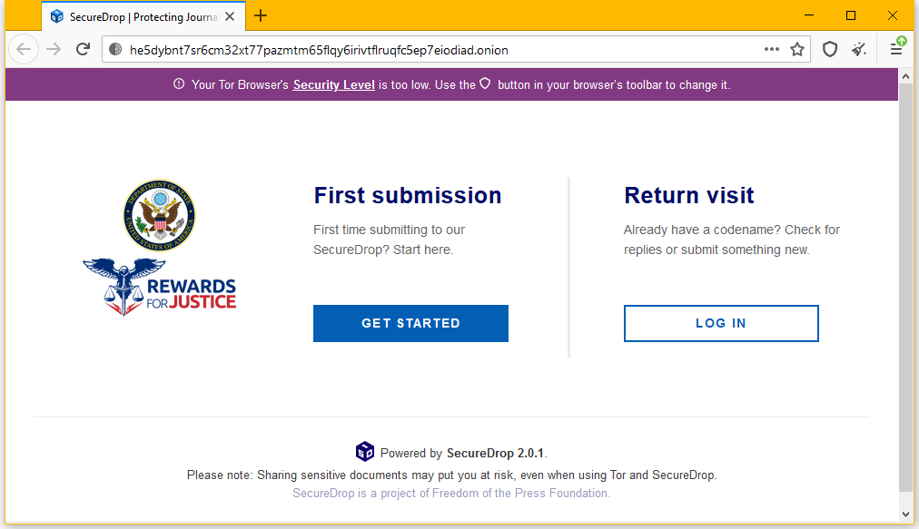 Чтобы облегчить получение информации, Госдепартамент заявил, что готов выплачивать вознаграждение в криптовалюте и даже создал специализированный веб-портал в даркнете для получения анонимной информации. Веб-сайт можно найти по адресу: