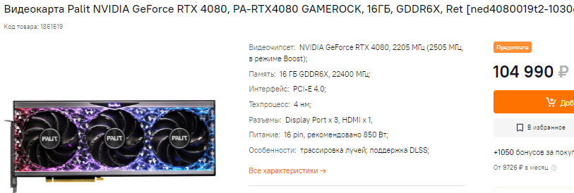 Иначе говоря, вместо рекомендуемых 58000 рублей за одну единицу Radeon RX 7900 XT, продавцы совершенно не стесняясь "впаривают" ее за баснословные 106000 рублей. Между прочим, множество вариантов GeForce RTX 4080 в российской рознице можно найти дешевле.