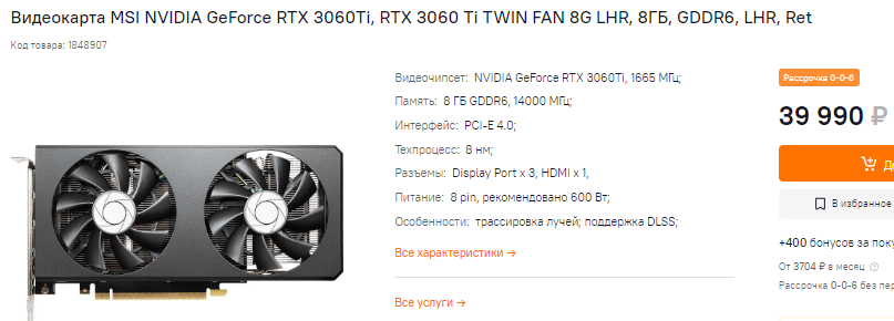 За 34 тысячи вы можете купить Radeon RX 6700. Изначально этот графический чип был выпущен для майнеров, но после на его основе начали делать видеокарты для геймеров. Здесь 160-битная шина и 10 Гб видеопамяти. С такой видеокартой вы смело можете запускать The Witcher 3 в разрешении 2К, получая максимальные настройки качества. А вот GeForce RTX 3060 Ti уже стоит 40 тысяч рублей. Скорее всего, когда вы прочтёте этот материал, то цены будут ещё выше. Проблема заключается в курсе рубля, который пошёл вниз. Увы, но пока вся полупроводниковая продукция закупается за доллары, а значит ритейлеры вынуждены вести пересчёт. По быстродействию обе видеокарты аналогичны, ну а вы смотрите, что кажется вам более предпочтительным.