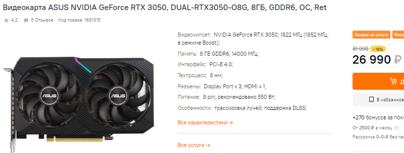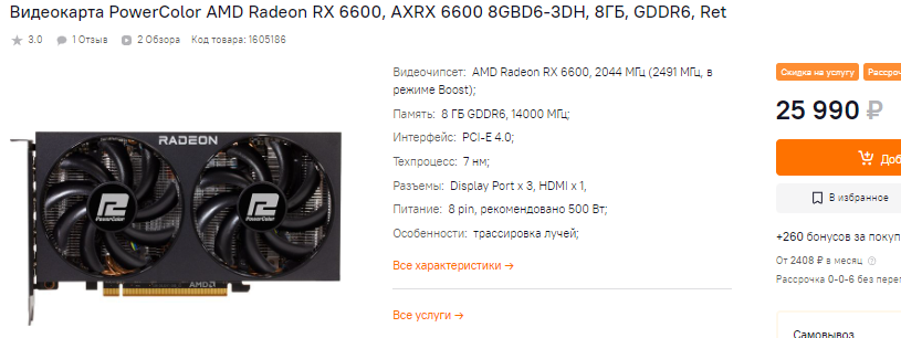 Radeon RX 6650 XT уже стоила около 30 тысяч рублей, ну а сегодня за неё просят чуть больше 32 тысяч. Переплата небольшая, а разница почти незаметна. Нам эта видеокарта кажется перспективной, поскольку предлагает впечатляющую производительность по разумной цене. Сам графический чип нетребовательный и прекрасно справляется с любыми играми в 1080р на максимальных графических настройках.