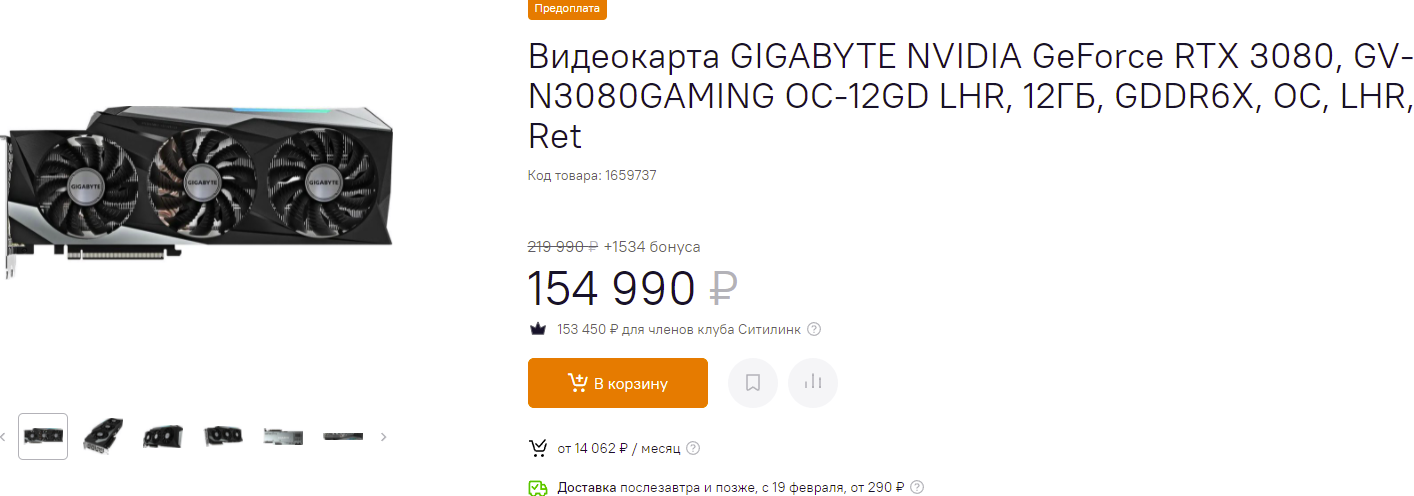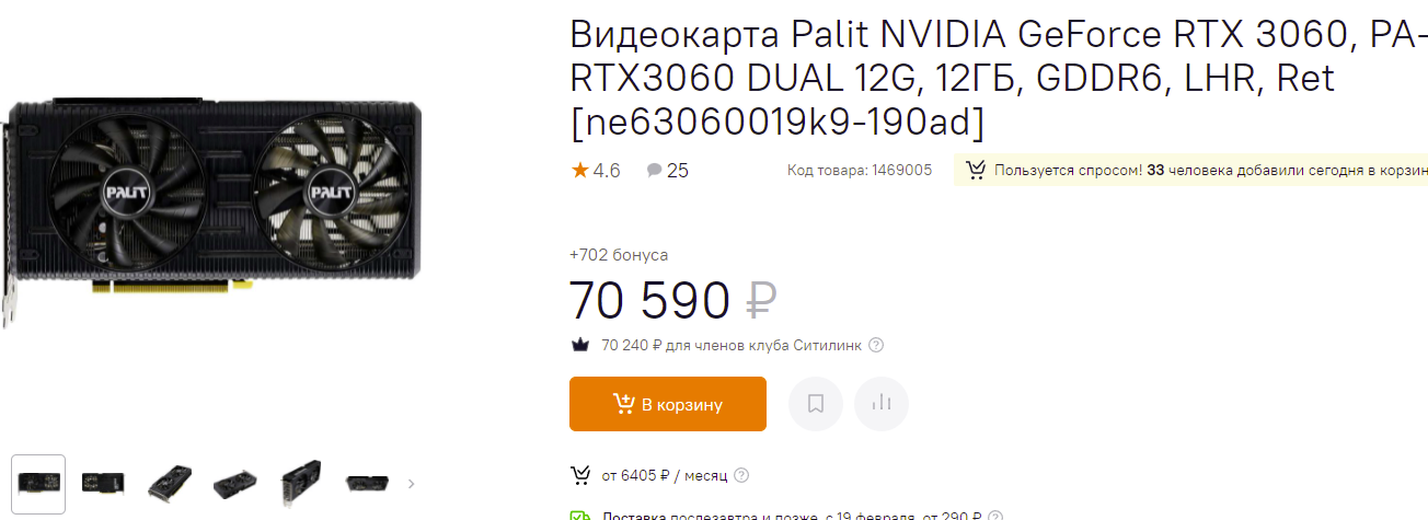 Лучше всего в последние дни расходится GeForce RTX 3060. Геймеры долго ждали скидок, поэтому нет ничего удивительно в том, что цена в 70 590 рублей кажется им вменяемой. С нашей точки зрения, карта должна скинуть ещё хотя бы 20 тысяч, и только после этого она станет интересна массовому геймеру. Вполне возможно, что к весне так и будет, но только с условием, что Эфир продолжит стоять на месте.